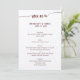 Cartes de menu mariage bordeaux simples avec texte personnalisable, imprimées sur papier écu feutre
