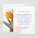 Cartes d'accompagnement de message de puits de souhaits pour un mariage. Dessin d'oiseau de paradis orange et texte imprimé en bleu sur des cartes blanches. Utilisez le message exemple, ou changez-le selon vos besoins. Une façon élégante de demander aux invités des cadeaux d'argent et non des présents. De grandes tiges de fleurs exotiques décorent le dos. Cette carte est livrée avec des mises à niveau de papier facultatives.