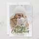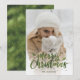 Cartes de Noël personnalisées en vert avec une photo recouverte de neige et une police en écriture manuscrite sur l'avant et fausse feuille verte avec de la neige à l'arrière. Personnalisez facilement ces cartes vertes de Noël avec votre image et votre texte.