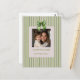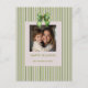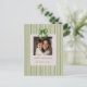 Une carte de vacances festive que vous pouvez personnaliser avec votre propre photo. Le design comprend des bandes vertes verticales élégantes sur fond blanc, un nœud ruban vert décoratif en haut, et le message "Joyeuses Fêtes" en texte vert, suivi du nom de votre famille en plus petite police. La mise en page est simple mais élégante, parfaite pour envoyer des vœux saisonniers.