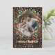 Cartes de Noël en bois rustique avec titre calligraphique et avec cadre photo géométrique orné d'une couronne d'aquarelle. Personnalisez facilement ces cartes de Noël en bois rustique avec votre image et un nom de famille.