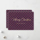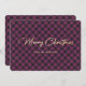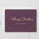 Cartes de Noël simples en plaid violet et or avec un titre de calligraphie en faux or sur un arrière - plan à damiers noir et violet. Personnalisez facilement ces cartes de Noël simples avec votre nom de famille et votre texte.