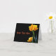 Belles et joyeuses cartes de notes élégantes avec photo originale de tulipes jaune vif qui se démarquent vraiment sur l'arrière - plan noir. Personnalisez avec votre propre texte sur la couverture et/ou l'intérieur de la carte. Ou, il suffit de supprimer l'exemple de texte si nécessaire. Parfait tout autour de la carte de billets ainsi que pour Pâques, Merci, Invitations, Annonces, Anniversaires, Sympathie, Anniversaires, etc.