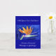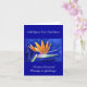 Le ventilateur vibrant comme la couronne de pétales oranges d'un oiseau de fleur paradisiaque contrastent avec l'arrière - plan bleu royal profond. Le tableau de fleurs d'aquarelle offre une vue panoramique de l'oiseau de fleur de paradis. Cette fleur est connue sous le nom de Fleur de Grue en Afrique du Sud. Personnalisez cette carte de voeux de fleurs Bird of Paradise ou des cartes de notes avec vos propres textes et images en utilisant le bouton "Customisez-le" pour créer un cadeau de fleur Bird of Paradise !