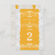 Cartes de numéro de table de mariage en dentelle jaune et blanc. Les articles assortis de cette collection sont disponibles.