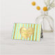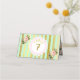 Cartes de numéro de table de mariage avec bandes vert sauge et or, roses rose et corail