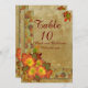 Cartes de numéro de table Mariage d'automne. Fleurs d'automne et motif de feuille sur des couleurs rustiques d'aspect parchemin.