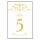 Cartes de numéro de table mariage or, avec détails décoratifs et monogrammes. Lorsque vous faites les numéros, changez le numéro et ajoutez les cartes à votre panier 1 par 1. Cette carte de numéro de table mariage fait partie d'une collection complète de mariage or.