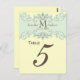 Carte de numéro de tableau Monogram Mariage vintage Swirls. Customisez avec vos renseignements personnels. Commandez une par table avec chaque numéro de table mais recevez toujours la remise en bloc pour le nombre total commandé. Doit placer chaque numéro de table est une commande séparée. Blue Swirls Wedding Invitations est un mélange élégant entre les fleuris victoriens et le monogramme moderne et le logo mariage de nom et sont parfaits pour définir un thème romantique du monde ancien avec le bleu et le taupe comme votre combinaison de couleurs. Customisez avec vos noms et couleurs mariages en utilisant les invites de menu faciles à utiliser de Zazzle après avoir sélectionné "Customisez-le". Conception par Elke Clarke ©2010 Graphics Licence