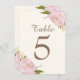 Élégantes cartes de numéros de table avec des pivoines roses peintes à la main sur fond ivoire. Cela fait partie d'une suite de mariage. Les articles assortis sont disponibles.