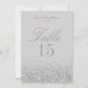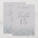 Cartes de numéros de table de mariage pailletées argent époustouflantes. Glamour, paillettes scintillantes argentées, cette carte de table se coordonne avec notre décoration de mariage et de douche de mariée pailletée. Pour plus de personnalisation, utilisez l'outil "personnaliser" sur Zazzle. Des options de couleurs supplémentaires sont disponibles dans notre boutique sur Zazzle chez MetroEvents. Conçu par Metro-Event.com