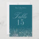 Cartes de numéros de table Paillettes Sarcelle et Menthe. Élégant, Paillettes avec une touche de sarcelle scintillante, cette carte de table se coordonne avec notre décoration de mariage et de douche de mariée à paillettes. Pour plus de personnalisation, utilisez l'outil "personnaliser" sur Zazzle. Des options de couleurs supplémentaires sont disponibles dans notre boutique sur Zazzle chez MetroEvents. Conçu par Metro-Event.com