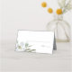Cette élégante carte de place botanique ou carte d'escorte comporte une arête de fond de feuilles et de fleurs d'aquarelle peints. Les fleurs et la verdure sont réalisées dans des tons bleu clair poussiéreux, vert et gris sur un arrière - plan blanc et croustillant. Un espace est prévu pour le nom de l'invité et le numéro de table. Les cartes sont inversées pour révéler les initiales et la date du mariage correspondant dans la typographie serif traditionnelle. L'intérieur est assorti à une couleur gris-bleu. Conçu pour correspondre à VG Invitations Floral Garden Weddings Collection. Pour voir d'autres cartes d'affectation de table, visitez le site www.zazzle.com/vginvites