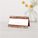 Cartes de placement de table élégantes rouge et or. Vous pouvez retirer la division dorée entre le nom de l'invité et le numéro de table si vous préférez.