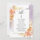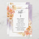Aidez vos invités à trouver leur table avec cette élégante carte moderne de plan de sièges avec des noms de invités avec la pêche exquise et crème fleurie et lavande teinte d'aquarelle violet. Cartes recto verso pour que les clients puissent regarder les deux, avant ou arrière pour voir leurs noms dans des affichages suspendus. Libérez de l'espace tout autour en vous donnant la liberté d'utiliser des clips ou un trou de perforation pour accrocher des écrans, ou d'utiliser le support/cadre de table. Cadre aux délicats détails floraux dans un beau mélange de teintes pêche, orange, rose vif, rose et champagne crème. Détails de calligraphie manuscrite moderne. Plusieurs options de couleur. Ayez tous les numéros de table dans la même couleur ou mélangez les couleurs selon le thème de couleur de votre événement. Une partie de notre collection "Peach Floral Delight with Lavender Purple" avec une variété de produits de coordination disponibles, y compris les cartes de numéro de table et les menus. Visitez la collection entière à l'adresse suivante : https://www.zazzle.com/collections/peach_delight_floral_and_lavender_purple-119272840408758311