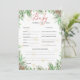 Créez un souvenir précieux pour les parents à venir avec ces Cartes de prédiction et de conseil pour bébé de vacances ! Conçu pour correspondre à votre thème de baby shower de vacances, ce jeu interactif vous propose de charmants biscuits de vacances en aquarelle dessinés à la main et des motifs saisonniers doux, ce qui le rend à la fois festif et fonctionnel. Les clients peuvent remplir ces adorables cartes avec leurs prédictions pour le bébé (comme la date de naissance, le poids et les caractéristiques) et partager des conseils ou des souhaits sincères pour la nouvelle famille. Une fois complétées, les cartes peuvent être compilées dans un beau livre de mémoire - un cadeau que les parents chériront pour toujours. Idéale pour les douches à thème Noël ou hiver, cette activité sans sexe encourage le rire, l'amour et des connexions significatives entre les invités. Il suffit d’acheter, de distribuer et de regarder chacun partager sa sagesse et ses rêves pour l’avenir du petit!