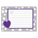 Motif de pois-pois amusant en gris et violet foncé avec des cartes de recettes imprimées au coeur pour compléter notre classeur. Changez la couleur arrière - plan du gris à n'importe quelle couleur.
