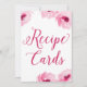 Cartes de Recette Panneau de Signalisation avec de jolies florales aquarelles roses
