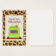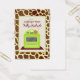 Un ensemble de 100 cartes de recettes (cartes de visite chauds) représentant une illustration d'un poêle vert vif d'inspiration rétro assis sur une surface bordeaux avec un pot orange assis sur le brûleur avant droit. L'Arrière - plan est la girafe print.