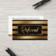 Ce design riche et saisissant présente un faux papier doré frappant et un motif noir à rayures horizontales et audacieuses sur le devant. Le centre est masqué par un rectangle noir avec deux bordures dorées, ce qui améliore le design sophistiqué. Au centre de l'insigne, en utilisant une jolie police de script moderne, est une superposition graphique typographique qui dit "Referral". Cette couche de texte graphique a été embellie avec le même effet or que j'ai utilisé dans les bandes et les bordures. Au verso, j'ai mis en place tous les champs de modèle que vous aurez besoin d'offrir les détails et les termes à vos clients. Utilisez les champs fournis pour ajouter vos propres détails et apporter les changements de libellé nécessaires. Vous pouvez également cliquer pour customiser plus loin si vous souhaitez modifier les polices, les tailles ou les repositions d'éléments. // Idéal pour les propriétaires de salon, les coiffeurs, les esthéticiennes, les manicuristes et les techniciens de l'ongle, les maquilleurs, les massothérapeutes, les entraîneurs personnels, et beaucoup d'autres dans les secteurs de la guérison et des services personnels qui apprécient honorer les aiguilles d'affaires. // N'hésitez pas à contacter si vous avez des demandes spéciales ou avez besoin d'aide customisée. // Conçu par Melody Watson pour Paper Muserie.