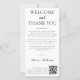 Cartes de placement QR élégantes et minimalistes noir et blanc Merci et Bienvenue