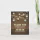 belles cartes de remerciement de mariage rustique de campagne avec des pots mason suspendus aux guirlandes lumineuses
