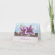Cartes de remerciement personnalisées au lys violet avec un thème rustique chic, conçues exclusivement par Artistically Invited, avec deux lys violets le long du haut, sur une surface en bois marron, sur un fond bleu. "Merci !" est imprimé dans une police de caractère violette au-dessus d'un fond en bois plus clair sous les lys violets. Vous pouvez personnaliser l'intérieur de ces cartes avec votre propre message personnalisé, en violet et marron. Vous pouvez également supprimer le texte du modèle pour laisser ces cartes vierges à l'intérieur pour écrire vos propres sentiments de gratitude à la main. Ces cartes de remerciement au lys violet sont parfaites pour envoyer des remerciements après vos célébrations de mariage et de shower sur le thème floral, ou pour vos remerciements quotidiens. Des étiquettes d'adresse et d'autres articles assortis sont disponibles.