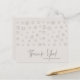 Ces notes de remerciement plat blanc cassé sont une excellente valeur imprimée sur papier de 110 livres et présentent un design pointillé, les mots "Merci" et votre nom en lettres chic. Des notes de remerciement parfaites pour votre mariage, douche nuptiale, baby shower, anniversaire, anniversaire, remise de diplômes ou tout événement spécial. Les enveloppes BLANCHES sont facultatives. Mesure 4,5 po x 5,6 po, mais vous pouvez choisir parmi 3 tailles de papier. PLUS DE COULEURS dans notre magasin.