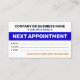 Carte de rendez-vous simple, taille: États-Unis : 8,9 cm x 5,1 cm, papier : Signature Matte, coins Coins carrés