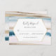 Élégantes cartes de réponse pour aller avec notre collection de mariage aquarelle bleue et or, idéales pour un mariage sur la plage, avec une ligne supplémentaire pour les besoins alimentaires de vos invités ainsi que du texte supplémentaire au verso qui est facultatif.