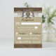Cartes de réponse de mariage à ferrure de cheval de style country western - Cartes de réponse de thème vintage ou cartes de réponse de style country avec un fond en bois et un design en dentelle et toile de jute imprimée sur le dessus, avec un nœud décoratif en ficelle et deux empreintes de fer à cheval. Le verso présente un design assorti. Trouvez ci-dessous des cartes de save the date, des invitations, des programmes de mariage et plus encore dans ce design pour compléter l'ensemble de la suite de mariage.