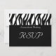 Cartes de réponse de mariage noires contemporaines modernes et audacieuses avec des invitations assorties avec des accents blancs et un élément de rayure verticale funky mais classe. Personnalisez en ligne avec vos détails de mariage.