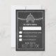 Cartes de réponse de mariage de grange rustique de campagne - comporte un fond de tableau noir imprimé sur le devant et le dos. Ce design présente une grange ou une ferme blanche avec une girouette coq près du haut avec des guirlandes lumineuses. Ce design peut être mis à niveau vers diverses options de papier cartonné et de forme disponibles ci-dessus.