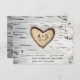 Cartes de réponse de mariage rustique avec écorce de bouleau - présente un fond d'écorce de bouleau blanc avec des nuances de brun, gris, noir et d'autres couleurs neutres. Le design présente également un cœur sculpté réaliste sur l'écorce de bouleau dans lequel vous pouvez "graver" vos initiales et la date de l'événement, et des polices de caractères typographiques modernes, pour un effet supplémentaire, sont utilisées pour le reste du texte de l'invitation. Ce produit apportera un élément intemporel à votre événement pendant des années et s'accorde avec tout type de thème, de couleur ou de saison de mariage - des mariages vintage, d'automne ou d'hiver, ou les thèmes rustiques toujours populaires. Consultez la collection assortie sur cette page pour trouver des produits coordonnés qui répondent à vos besoins événementiels.