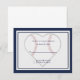 Cartes de réponse d'invitation sur le thème de baseball avec une bordure bleu marine. Voir l'invitation correspondante ci-dessous :