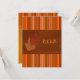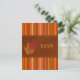 Cette carte de réponse en cuir suédé LOOK aux couleurs orange, rouille, or et feuilles d'automne marron et rayée correspond à l'invitation illustrée ci-dessous. Certains papiers modifieront la couleur du design. Je ne recommande pas d'utiliser les papiers métallisés or ou argent, car ils assombriront le design sans y ajouter d'étincelle supplémentaire par rapport à ce que vous obtiendrez avec les papiers métallisés glace ou champagne. DE PLUS, si vous redimensionnez la carte, ou si vous changez de police, ou la taille de la police, une partie du design et/ou du texte risque d'être coupée. Tout s'imprimera exactement comme vous le voyez sur votre écran. Je ne verrai pas votre carte, et Zazzle ne corrigera rien (fautes de frappe, désalignement, etc.). Le texte et le papier sont entièrement personnalisables. ****VEUILLEZ NOTER que la petite carte de réponse (8,9 cm x 12,7 cm) est la SEULE carte qui rentre dans l'enveloppe pour l'invitation carrée de 13,3 cm,