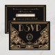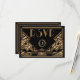 Une carte de réponse RSVP de mariage élégante et audacieuse, de style vintage avec un thème "Gatsby le Magnifique" des années folles dans des tons noirs et dorés. Un fond noir met en valeur la bordure géométrique complexe de style Art Déco dans des tons beige doré. Des polices décoratives de style d'époque ont été sélectionnées pour compléter l'apparence.