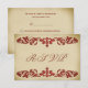 Un arrière - plan en papier parchemin vintage et en mauvais état dans des tons chauds et crémeux constitue la base de ce modèle de carte de réponse de mariage RSVP. Avec le défilement décoratif des feuilles dans un style damassé, ombragé dans des tons rouges bordeaux profonds, c'est une option élégante et attrayante. Les articles correspondants sont disponibles en magasin.
