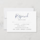 Conçu pour coordonner avec mon ensemble de papier à lettres mariage couleur côtière, cette carte rsvp blanc et bleu marine présente vos informations de réponse dans une typographie de script à lettres modernes dans un bleu foncé. Un espace est prévu pour que les clients puissent ajouter leurs informations sur le rsvp et des options de repas simples. La carte revient à une couleur bleue gratuite. Modifiez facilement la couleur pour adapter votre thème mariage en cliquant sur "Modifier en utilisant l'outil de conception" dans la section "Personnaliser ce modèle". Pour voir la papeterie mariage correspondante, visitez www.zazzle.com/dotellabelle