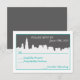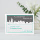 Cartes de réponse RSVP pour réception, pour ceux qui ont un mariage de destination, une cérémonie privée ou une fugue ! Présentant une invitation moderne et contemporaine avec des couleurs gris foncé, blanc et turquoise et des choix de polices amusants. L'horizon de Chicago est présenté, mais convient pour TOUTE réception de mariage en ville urbaine.