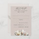 Cartes de réponse du menu mariage avec fleurs de magnolia en orientation verticale. De belles fleurs de magnolia méridionales ornent le bord inférieur des cartes d'enceinte, avec plus de fleurs sur le dos. Couleur rose-beige avec texte gris foncé. Deux lignes pour les noms des invités, ainsi que le libellé qui demande un décompte des invités avec la réponse. Modifier le libellé au besoin.