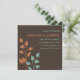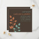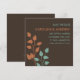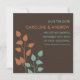 Faites savoir à vos amis et à vos proches que vous vous mariez avec ces annonces de sauvegarde de date modernes et élégantes qui présentent des branches et des feuilles d'arbre de couleur orange et sarcelle sur un fond brun chocolat. Design ultra-moderne avec des lignes et des polices nettes et épurées.