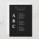 Cartes de siège Mariage Alphabétique Moderne