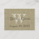 Le look de Burlap et d'un arc imprimé sur cette carte mariage rustique. Correspondance des invitations, personnaliser du texte au besoin. Ajoutez les noms de la mariée et du marié avec un monogramme et une date de mariage à l'arrière. Ce produit est imprimé. Aucun véritable burlap et aucun véritable arc ne sont inclus dans ce produit.