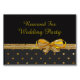 Cartes de table "Réservées" en noir et or. Le texte dit, "réservé à la fête de mariage" mais peut être modifié pour dire ce que vous voulez dans la zone de personnaliser.