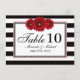 Cartes de table de mariage Fleurs rouges et rayure