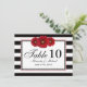 Ce charmant design présente des grappes de marguerites de Gerbera rouges et des rayures horizontales audacieuses en noir et blanc. L'insert comporte une bordure décorative entourant le texte intérieur de manière élégante. Cette Carte de Numéro de Table personnalisée fait partie de la collection de mariage "Mariage Marguerites Rouges et Rayures" et comprend le numéro de table de réception de mariage, les noms des heureux mariés et leur date de mariage. Personnalisez avec votre nom et vos informations en sélectionnant "Personnaliser" et en ajoutant vos informations à l'aide du modèle sur le côté droit de l'écran. Choisissez parmi une variété de besoins de planification de jour de mariage pour préparer votre jour spécial.