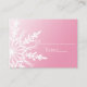 Personnalisez ces cartes de table de mariage hivernal rose avec flocon de neige blanc avec le nom personnel de votre invité et la table à laquelle ils seront assis lors de votre réception de mariage sur le thème de l'hiver décembre, janvier ou février. Ces élégantes cartes d'escorte de mariage hivernal personnalisées présentent un design complexe de flocon de neige blanc sur un fond dégradé rose.