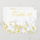 La couleur du texte et de l'arrière - plan de cette carte mariage ou numéro de tableau d'occasion spécial jaune, gris et blanc est entièrement personnalisable. Pour le modifier, utilisez l'option personnalisée. Pour des modifications plus importantes de la carte, y compris des modifications de la police, de la couleur de police, de la couleur arrière - plan ou de l'emplacement du texte, utilisez l'option personnaliser. Il s'agit d'une belle et élégante carte de table pour un mariage de printemps ou d'été ou autre occasion spéciale.