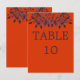 © 2012 Socialite Designs. Nos élégantes cartes de table en prune recto-verso feuille et arrière - plan orange sont un complément parfait à votre événement Mariage de automne ou spécial.